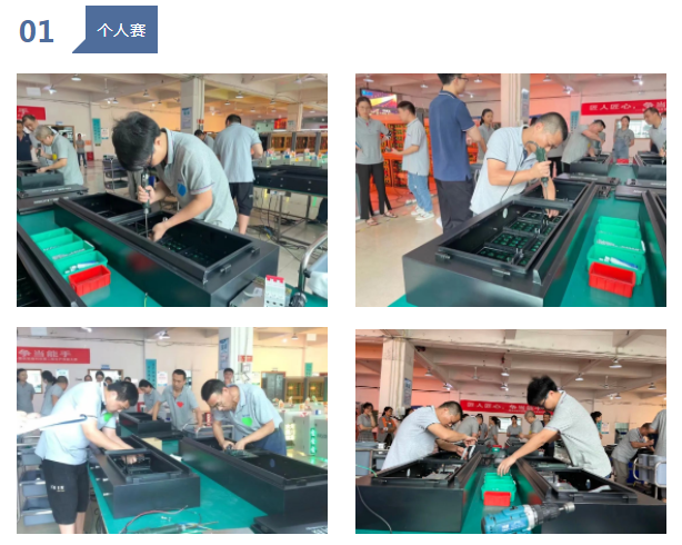 主持人一聲令下,比賽正式拉開了帷幕,只見各比賽人員手里不時(shí)變換著各種零件和工具∶螺絲釘、電鉆頭、單元板…雖然都是一樣的程序,但是每個(gè)人在工作中都總結(jié)出了自己的經(jīng)驗(yàn)和妙招。有的人在這個(gè)工藝駕輕就熟,有的人對(duì)那個(gè)工藝胸有成竹,你追我趕,真是八仙過海,各顯神通。每一個(gè)參賽選手都全神貫注,比賽現(xiàn)場雖然安靜,但處處透露著比賽的激烈。